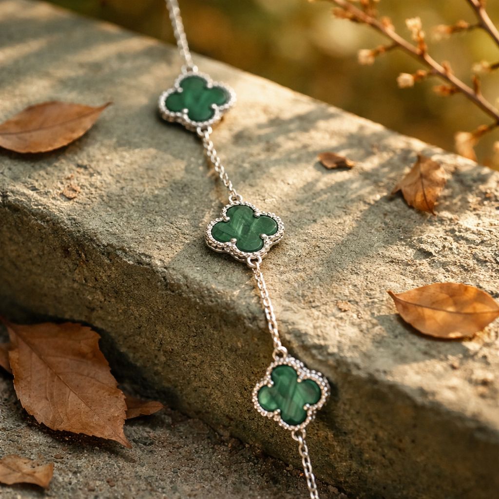 צמיד כסף תיליונות ירוקים