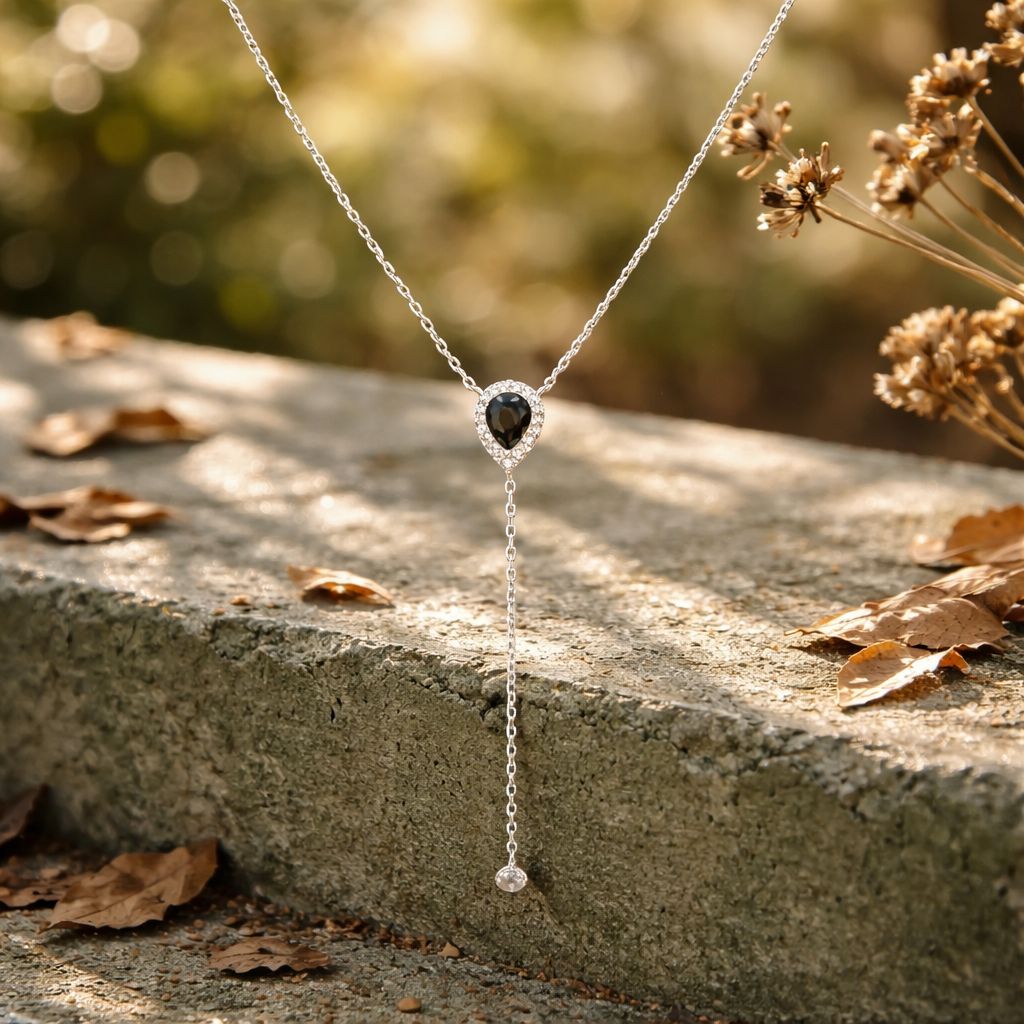 כמות של שרשרת כסף 925 אבן חן שחורה